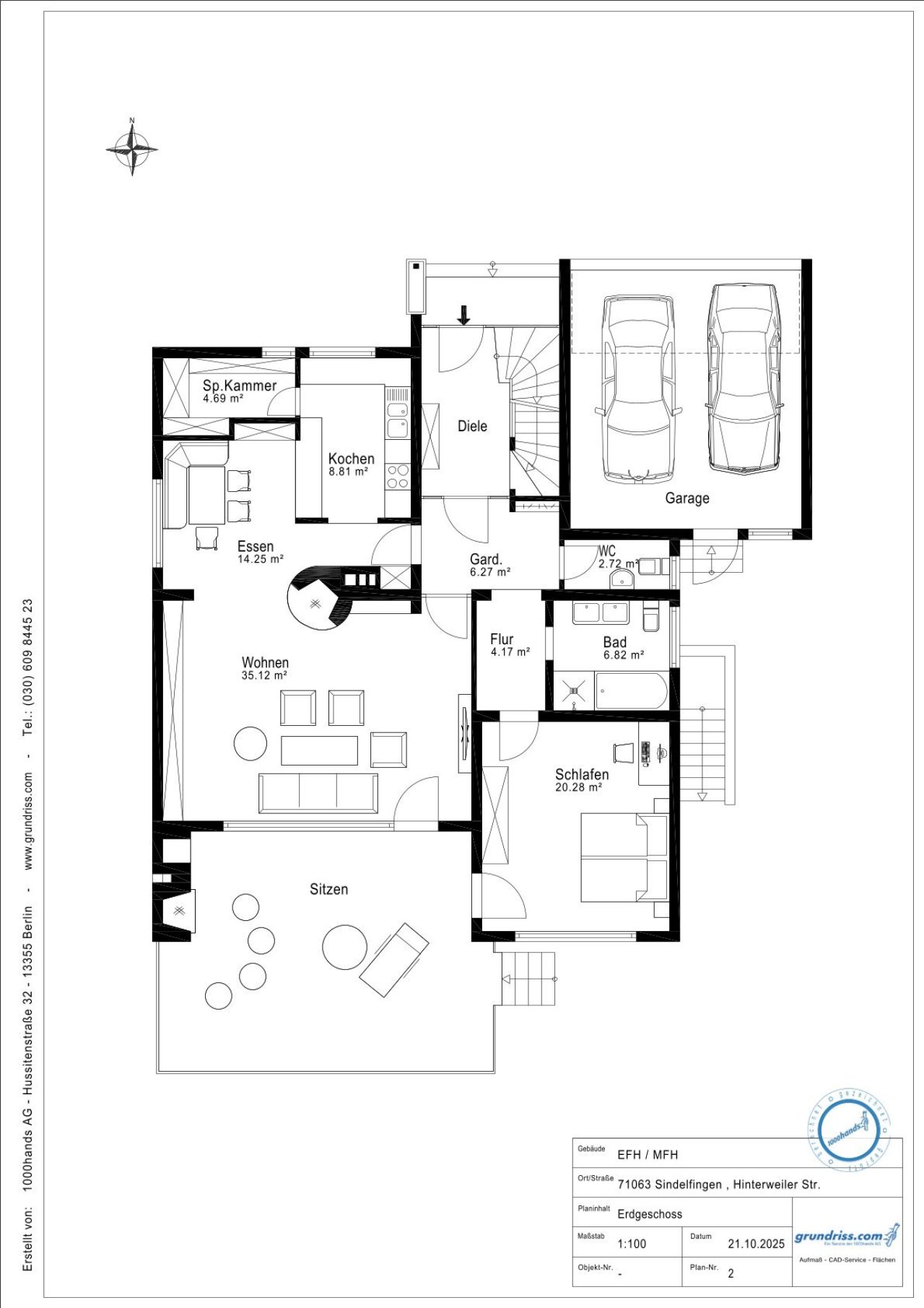 Anzahl der Parkflächen: 1 x Außenstellplatz; 2 x Garage